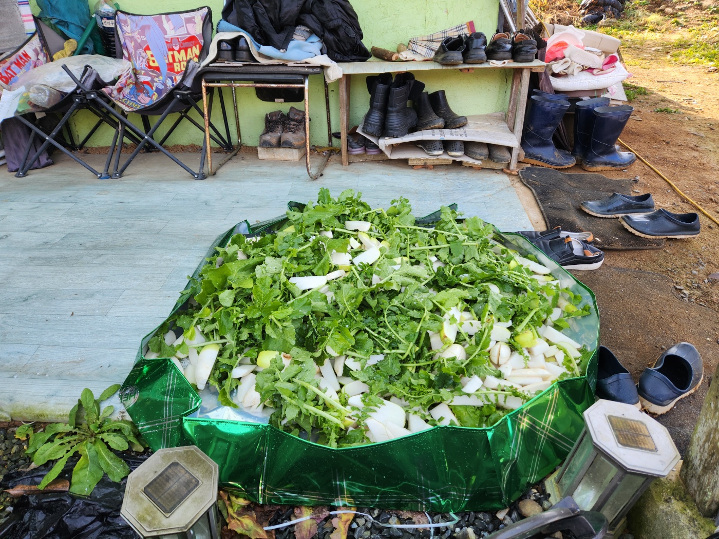 이번에는 가장 힘든 일인 밭에서 배추 뽑아서 절이는 작업부터 저희가 하겠다고 여러 번 말씀드리고 하루 일찍 휴가도 내서 도착했음에도 이미 배추는 뽑아서 절여놓으셨다는.... 언제나 부모님은 자식이 덜 힘들었으면 하시는 듯합니다.