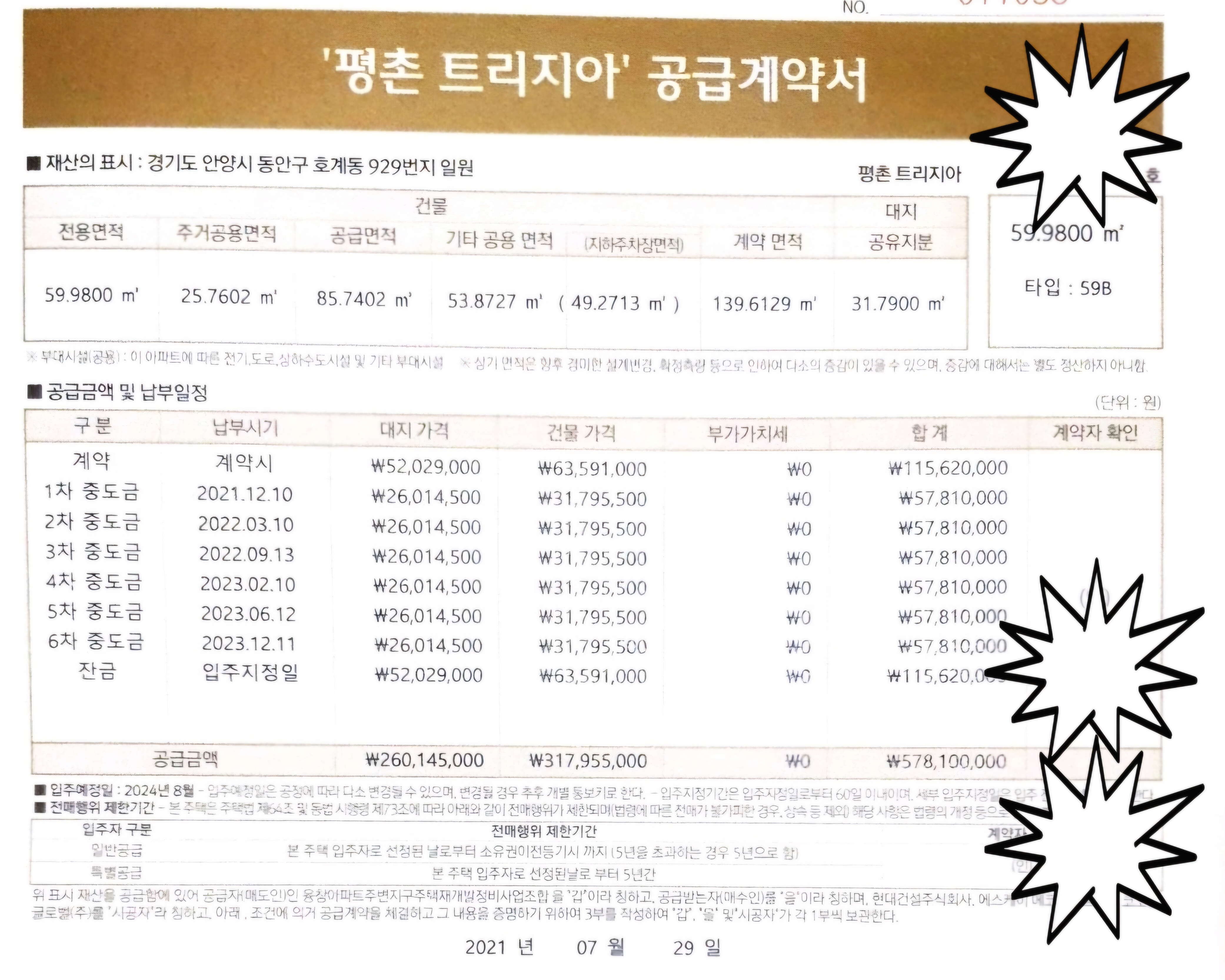 다음은 당첨 후 계약 관련 경험을 공유하겠습니다.